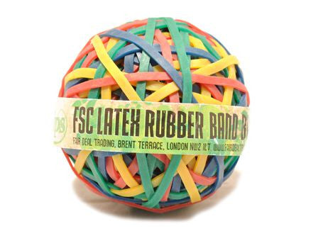 Misschien heeft u er als kind nog mee gespeeld of het in een reportage gezien: een rubberen bal gemaakt van elastiekjes. De ‘Green tips’ elastieken balletjes (‘rubber band balls’) zijn gemaakt van natuurrubber uit duurzame bossen en dragen het FSC keurmerk van de Forest Stewardship Council. Het rubber wordt op een fair trade manier geproduceerd en het verpakken gebeurt in een project voor tsunami vluchtelingen in Sri Lanka. Een volledig verantwoord product, fijn om mee te spelen of te gebruiken.